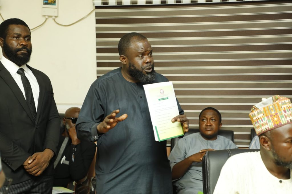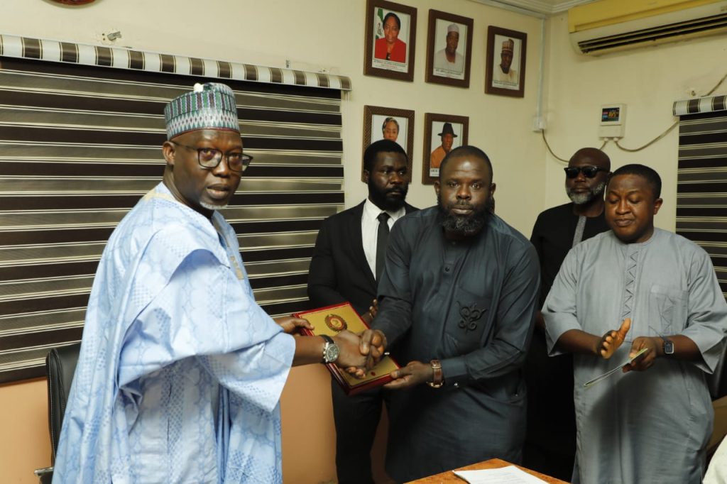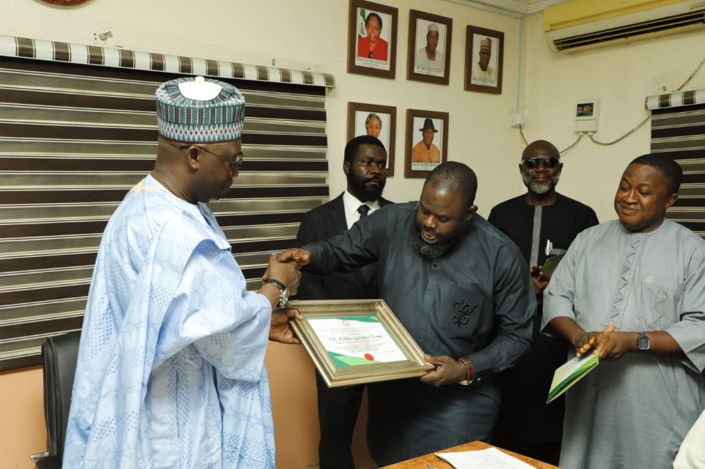 Amb. Splendour Agbonkpolor, Executive Director, initiative for Leadership and Economic Watch in Nigeria, led the group to the director for the presentation of the award.